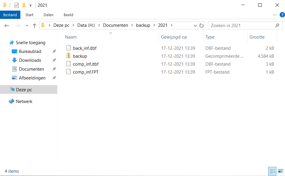 Als je nu via Windows verkenner de map opent dan zie je dat er 4 bestanden in de map zijn gekomen. |