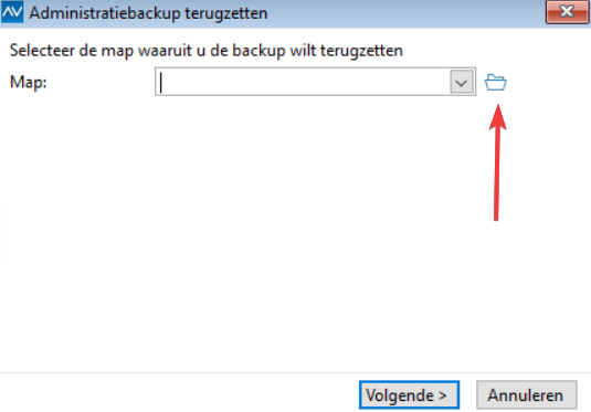 Klik op de map knop om de map waarin de back-up staat te selecteren
