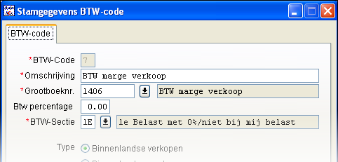 Controleer hier de BTW-sectie. Deze moet op 1E staan. Klik na het aanpassen op OK om de wijzigingen op te slaan. |