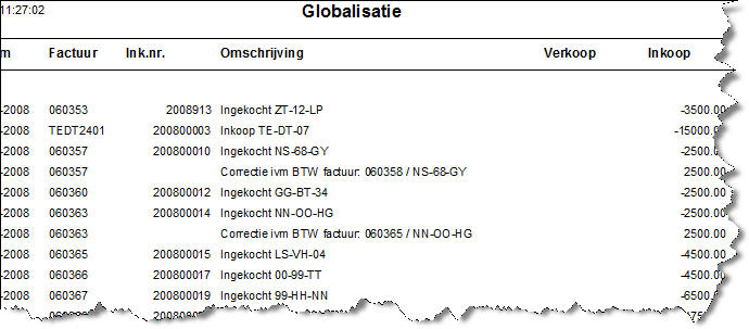 Bij het afdrukken van een globalisatierapport zijn er opvallend veel regels met een BTW-correctie.