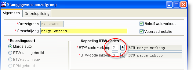 De oorzaak kan ook zijn dat een verkeerde BTW-sectie is ingevoerd bij de BTW-code die gebruikt wordt bij het verkopen van marge-auto’s. |