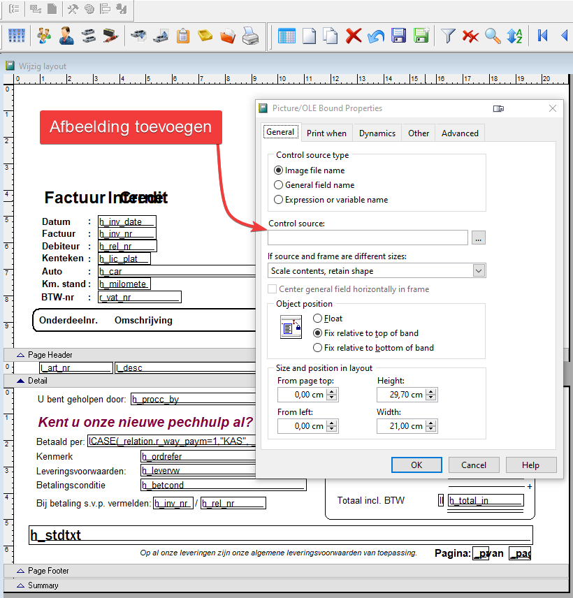 Nu komt het venster Picture/OLE Bound Properties naar voren.