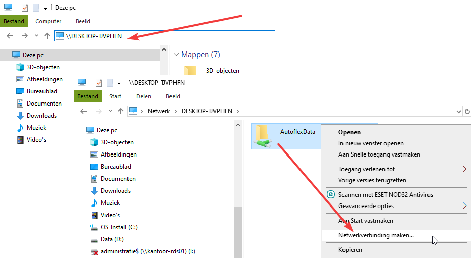 • Klik rechts op de gedeelde map en kies voor 'Netwerkverbinding maken'