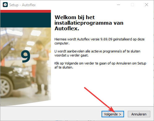 Download de setup: www.autoflex.nl/downloads/setup.exe en voer het uit via onderstaande stappen: